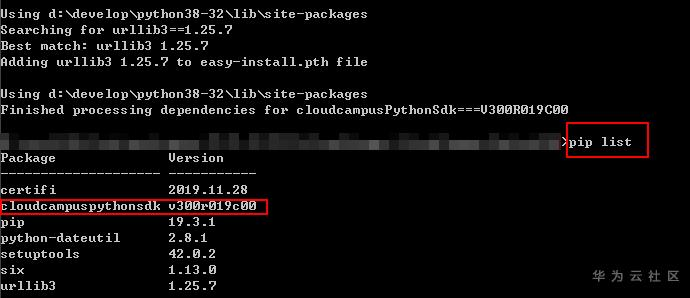 下载完成后,解压文件。打开cmd命令行,运行如下命令进入CloudCampus Python SDK源码文件夹,例如运行如下命令: