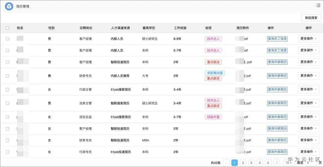 泛微OA人事管理平台的人才库支持从多渠道获取人才简历,不论是外部投递、内部员工或离职员工,都可通过统一的人才库进行管理。