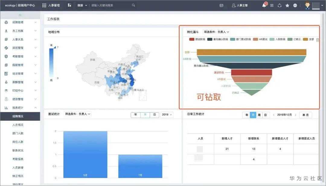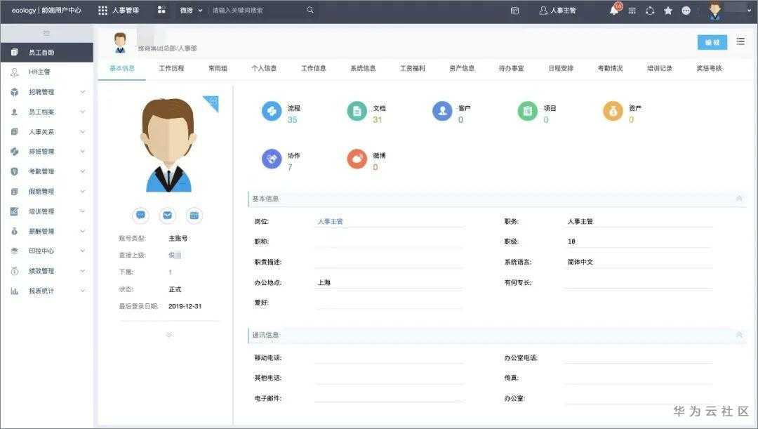 包括人员的基本信息、考勤信息、工资情况、待办工作、培训、绩效等信息,形成员工的全周期管理。