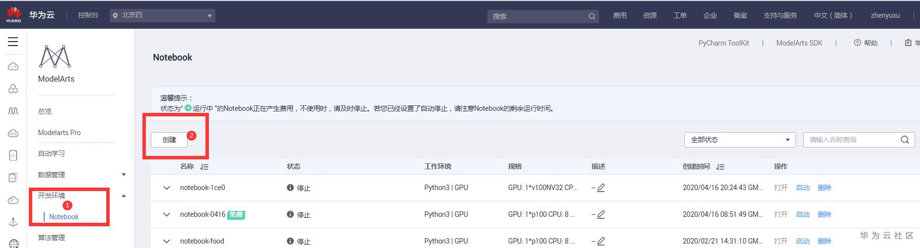 返回 Notebook 列表,单击 Notebook 作业列表操作栏中“打开”,打开Notebook。