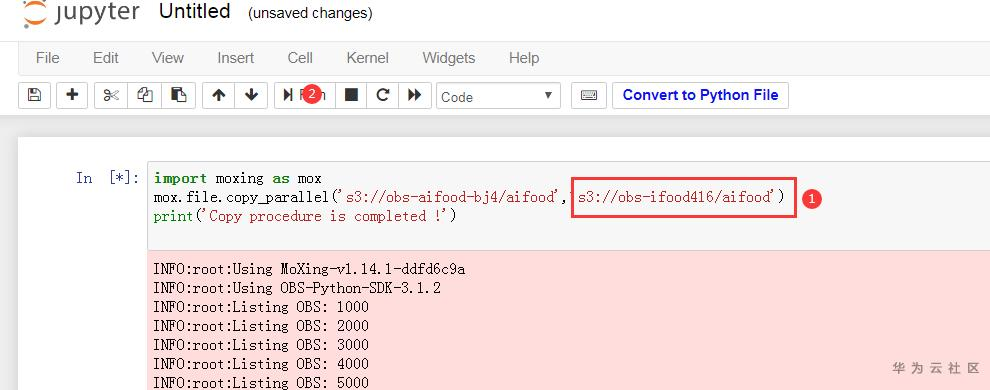 在代码输入栏中输入如下代码,即可从 OBS 公共桶中将竞赛数据拷贝至您创建的 OBS 桶中。本 baseline 使用的是 Pytorch 框架,您也可以根据自身使用习惯选择其他框架。
