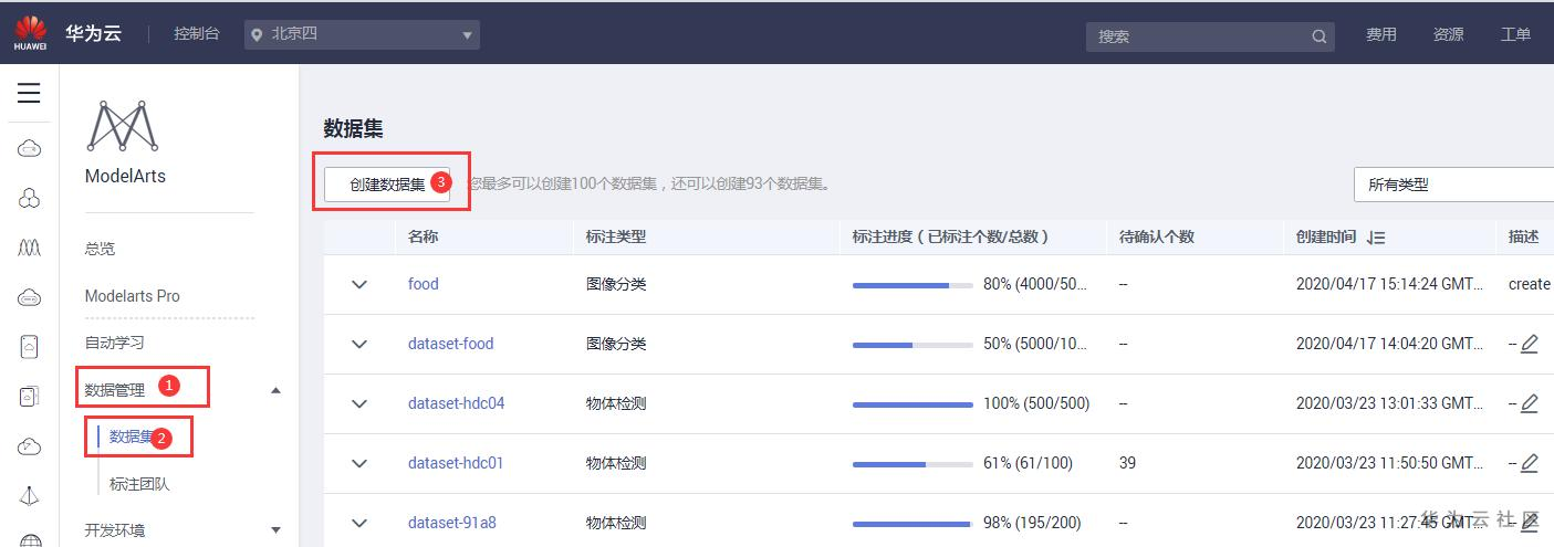 点击数据管理-数据集-创建数据集
