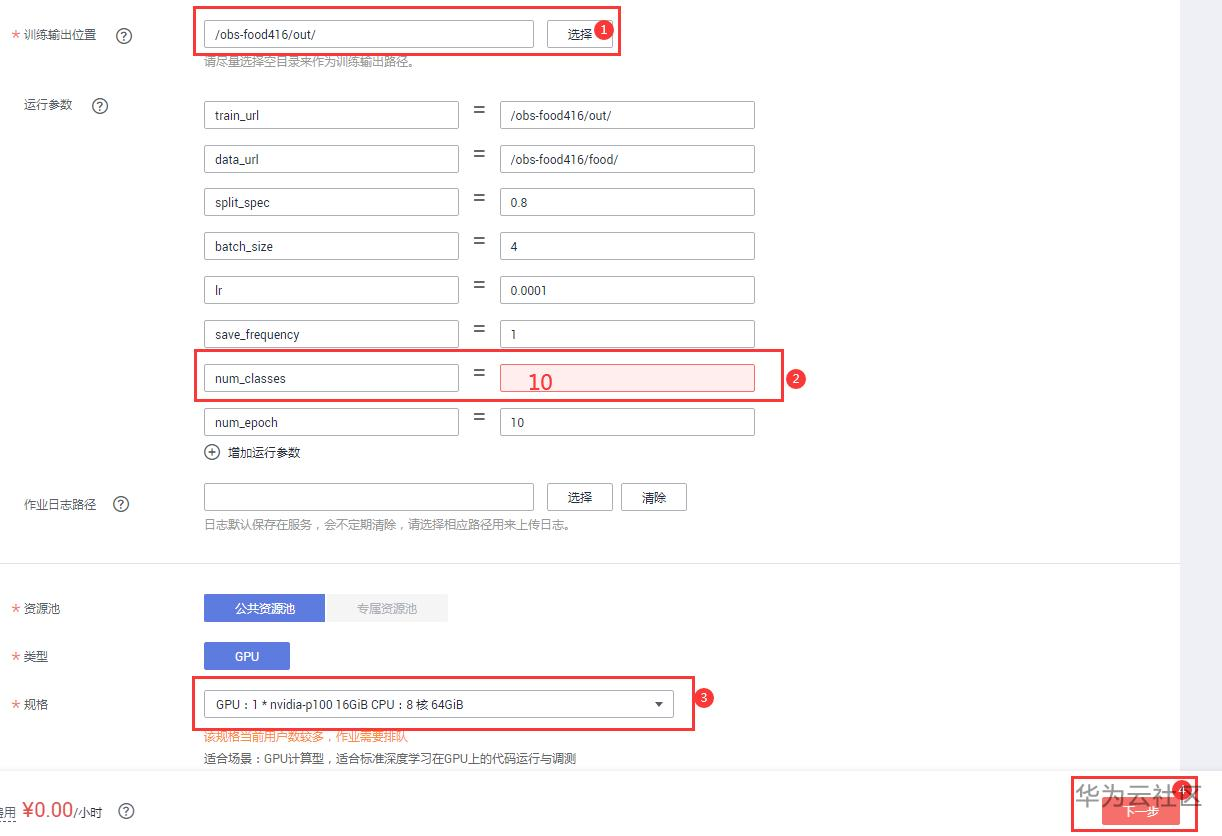 训练输出位置,在obs中建一个新的文件夹out,输出位置为:/obs-food416/out/