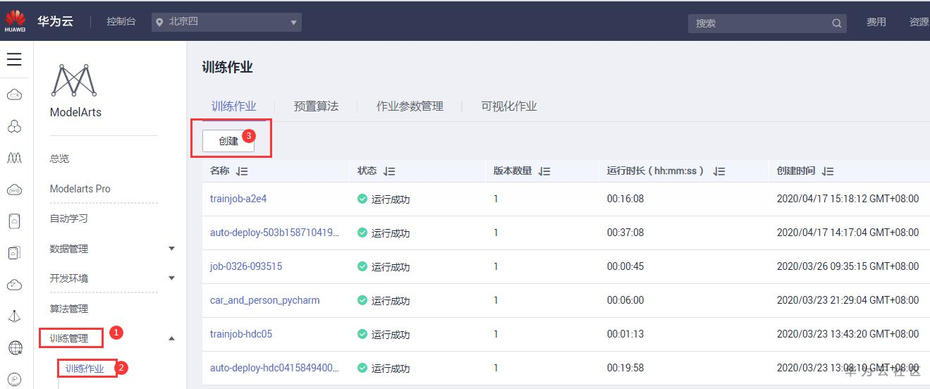 点击训练管理-训练作业-创建,来创建一个模型的训练任务。