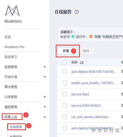 点击部署在线-在线服务-部署