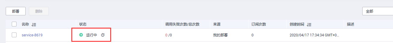 等待状态由“部署中”变为“运行中”,说明已经完成部署。