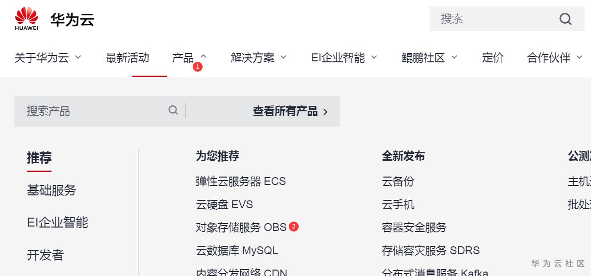 打开华为云网站www.huaweicloud.cn点中对象存储服务OBS