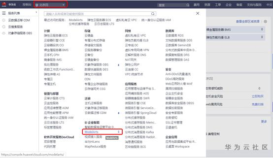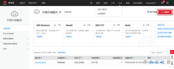 在华为云控制台点击服务列表选择:存储->对象存储服务OBS