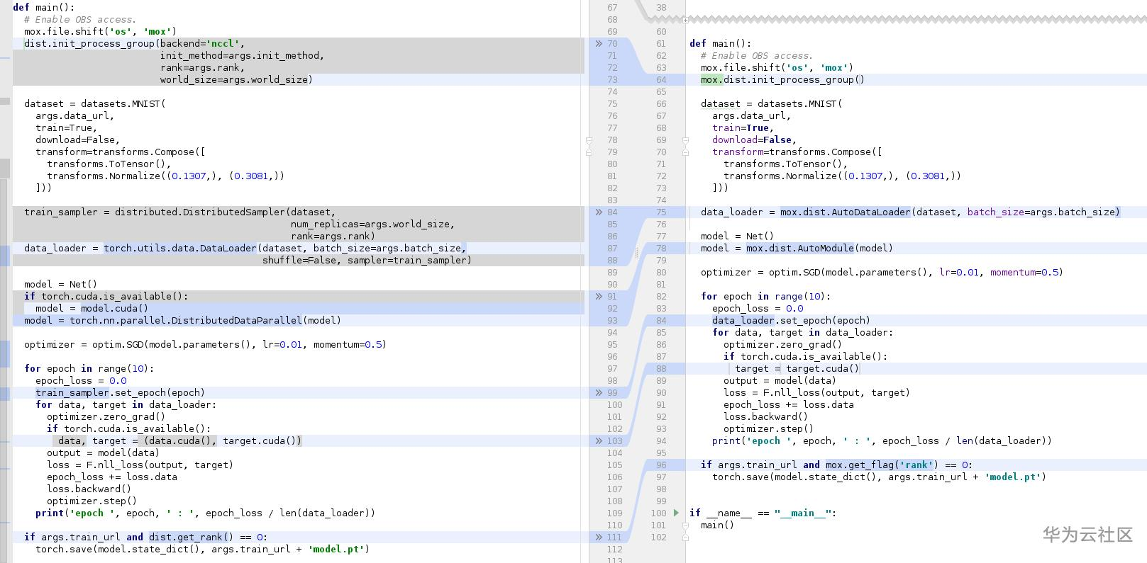 方法一:使用mox接口进行pytorch分布式编程,参考文档