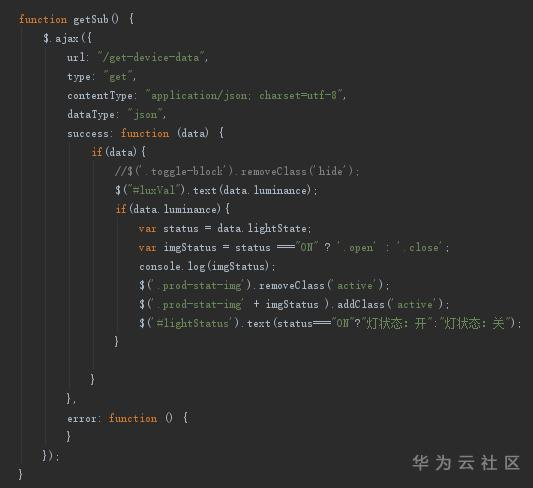 当数据获取方法是订阅推送时,被循环调用的是getSub()函数。getSub()函数调用/get-device-data接口,并根据返回值设置界面显示值。