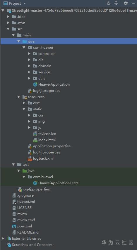 所以,该应用的主要功能代码都位于main文件夹下,其中java文件夹下是后端代码,resources文件夹下是前端代码和资源。
