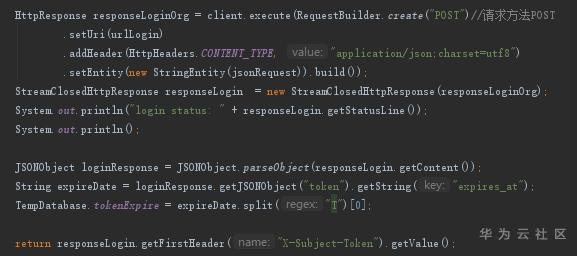 通过对比订阅函数和接口文档,我们可以看出来函数中的accessToken对应接口中的X-Auth-Token,所以login()方法对应IAM服务的获取用户Token接口。