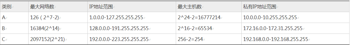 互联网管理机构定义了5种IP地址类型以适合不同容量的网络。私有IP分别在A、B、C三个类中保留了一段作为私有IP网段。
