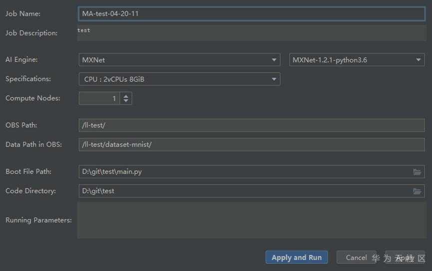 填写参数,可以参考ModelArts训练模型时填写的参数: