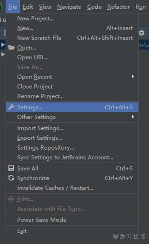 接着回到pyCharm IDE,打开Settings: