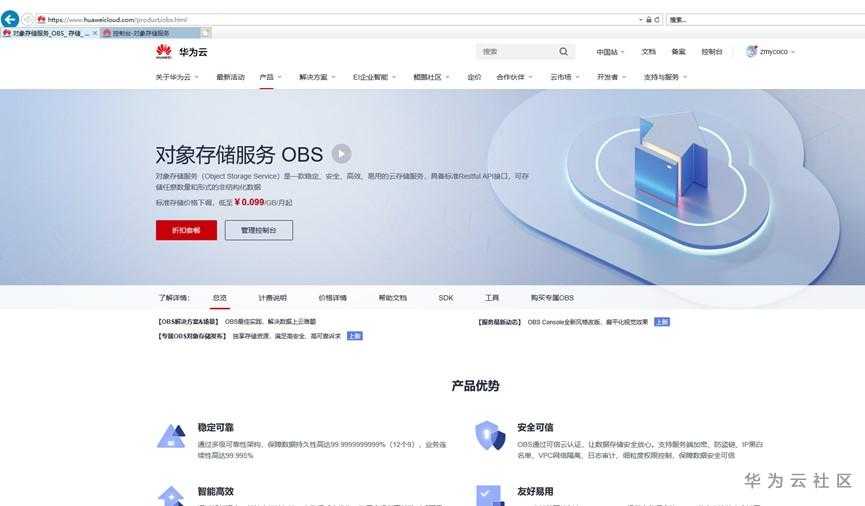 登录华为云上传OBS: