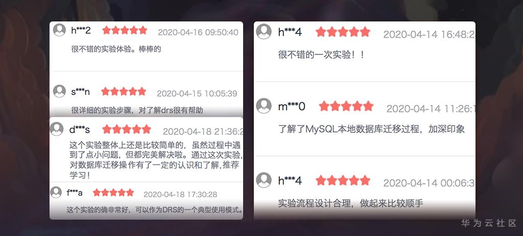 俗话说:光说不练假把式,实践过程见真章。为了让广大用户感受华为云DRS的优秀迁移能力,我们在云端实验平台开放了迁移实践——MySQL本地数据库迁移,截止目前已累积了3600+用户前来感受和体验,并收获了一大波好评。