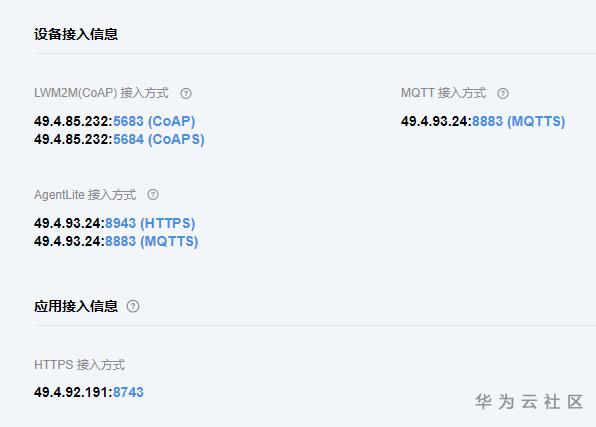 可以看到CoAP的方式有连个地址,本人选的CoAP也就是5683,端口号,这个地址是配置模组的重要信息,在配置模组的信息的时候会有一条选项让手动填写这个地址信息和端口号。还有一点我忘记说了,既然模组上有对接的地址信息填写栏,那么平台上也要有模组的信息填写项才对,没错,在Profile之前创建项目的时候就有了,要在那个信息填写部分填写上模组的信息(一串数字字母啥的)。