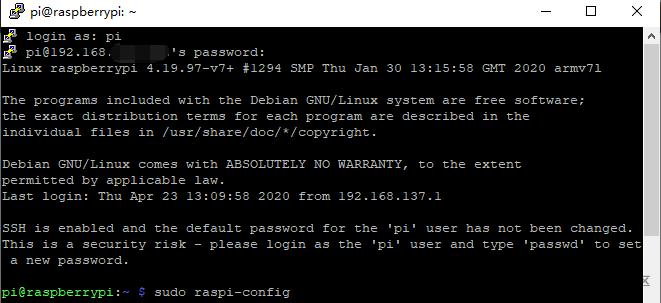 4. 初次登陆需要验证,我没有更改过树莓派的密码, 所以用户名是pi,密码是raspberry