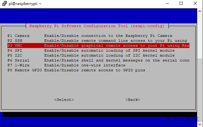【摘要】 VNC是什么?远程登录树莓派,一般是两种方法,一种是使用SSH协议的PUTTY,一种是VNC的VNC Viewer。VNC具有图形界面,更受大家喜欢,你不需要给树莓派外置任何设备,就能在电脑上像运行一个普通程序一样,操作树莓派。 配置树莓派VNC1. 输入sudo raspi-config,回车进入如下页面 2. 通过方向键盘,选择并打开第5项,回车3. 选择第3项VNC,回...