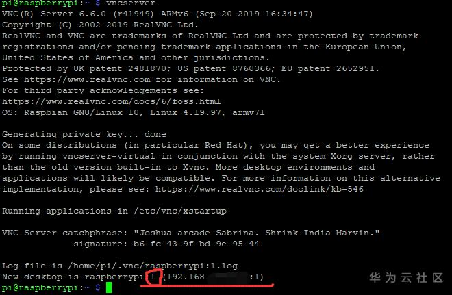 5. 输入vncserver,请记住这个1,这是我们的端口号