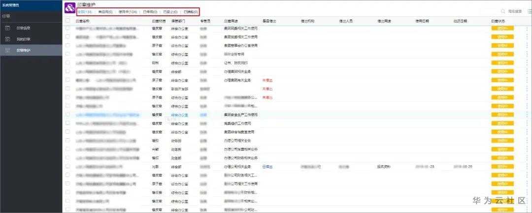 通过对印章管理过程进行流程化管控,对印章的出借、启用、停用等操作进行全过程记录,通过流程的流转实时更新台账中印章状态信息。