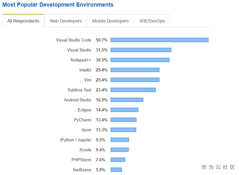 相信大家一定会有疑问,为什么要迁移到VSCode呢?自研架构当然有很多好处,比如控制力强,可以不受限制实现任何想要的特性,又比如界面布局可以定制化。但是要做到一个真正好用、符合开发者习惯的IDE是很难的,需要大量人力+长期的投入。所以我们还是选择了站在巨人的肩膀上,这个巨人就是VSCode。VSCode基本算是当前最流行的IDE框架了,根据stack overflow的统计高达50% ,同时它使用开源友好的MIT协议。