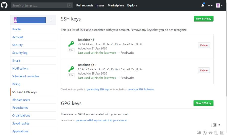 在上图中点击 SSH and GPG keys