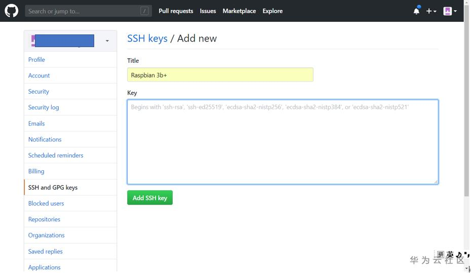 在上图中 点击 New SSH key