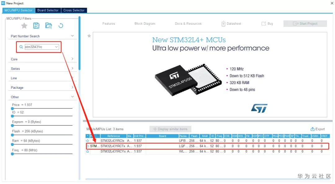 1、芯片选型,这里选择stm32l431rctx