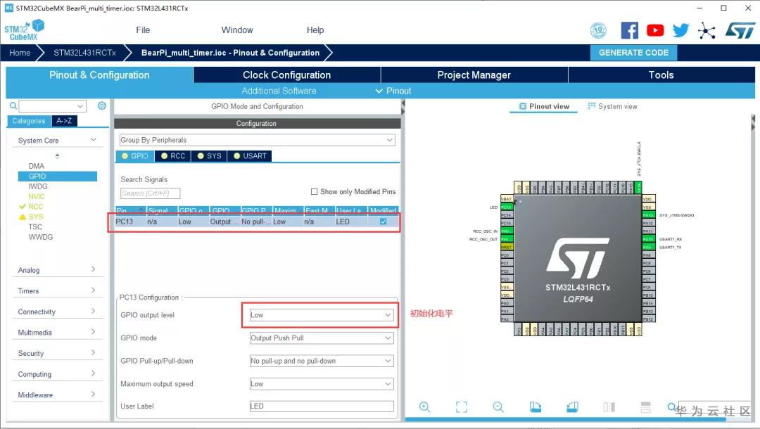 1、用multi_timer创建软件定时器1,用来以500ms的频率让LED灯交替闪烁。