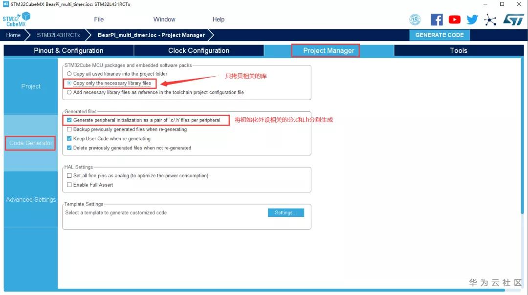 实际开发建议硬件外设分模块,这样看起来不要把所有的生成全部都挤到main.c里面去了,这点让我非常讨厌,所以生成工程时候习惯点击设置以下这一项: