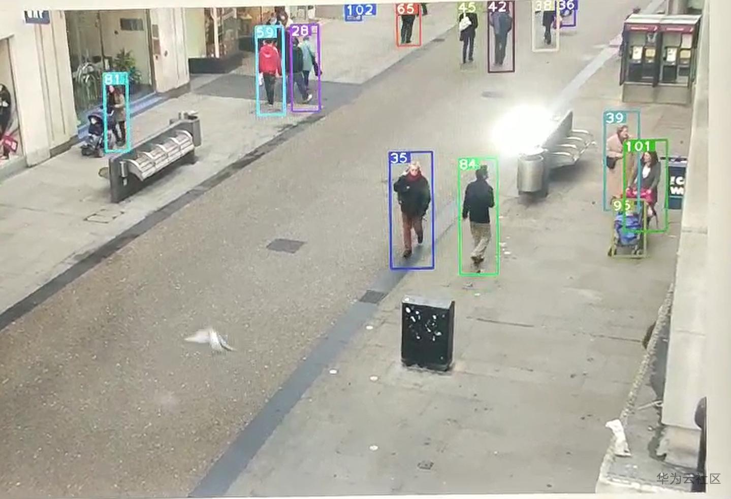 最近在用Atlas 200 DK,正好在学习行人跟踪方面知识,做了个行人检测和跟踪的Demo,使用华为云ModelArts预置算法YOLOv_ResNet18做行人检测,Sort算法做跟踪,结果类似如下(因为写视频有问题,就只能逐张保存成图片了):
