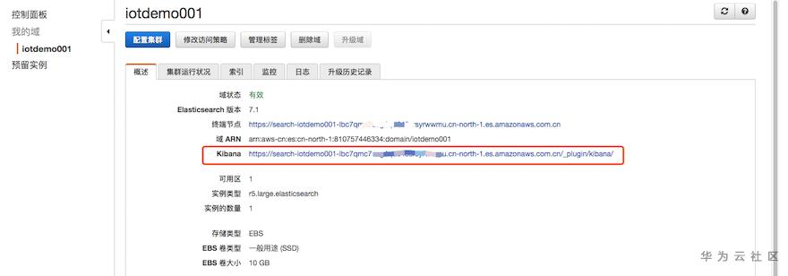 2.配置集群选择默认配置就好,取一个Elasticsearch 域名,比如awsiotdemo01。