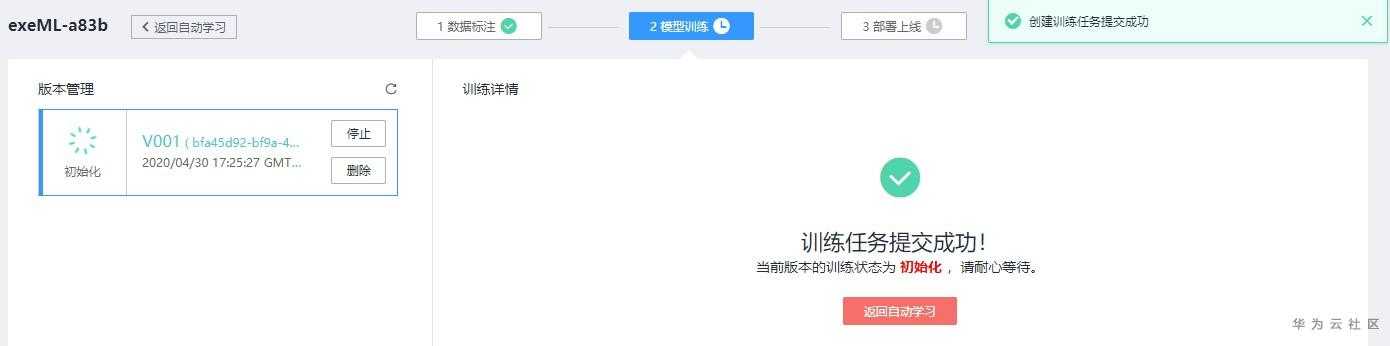 接着选定数据集后,你会看到如下图所示的步骤,分为数据标注、魔性训练,以及部署上线。