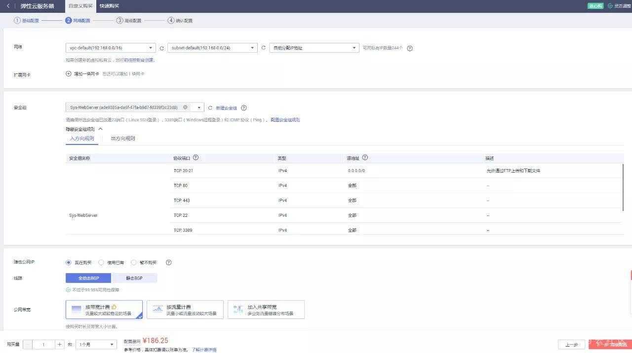 安全组默认安全组,可在云服务器创建成功后修改。
