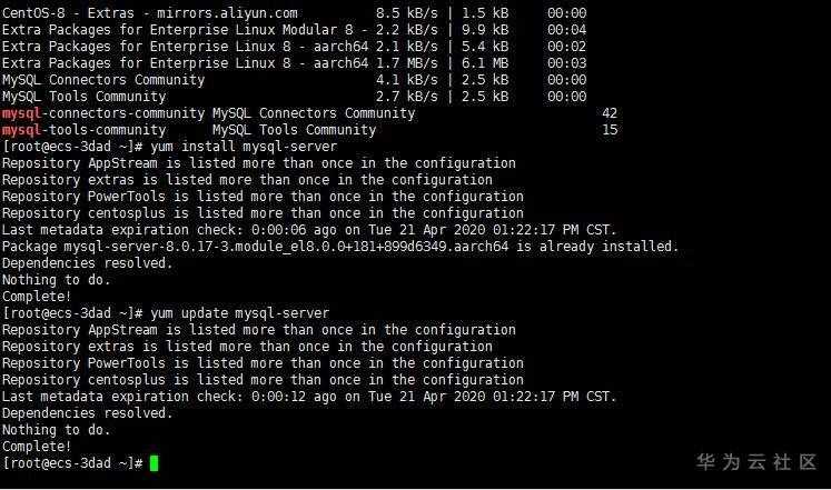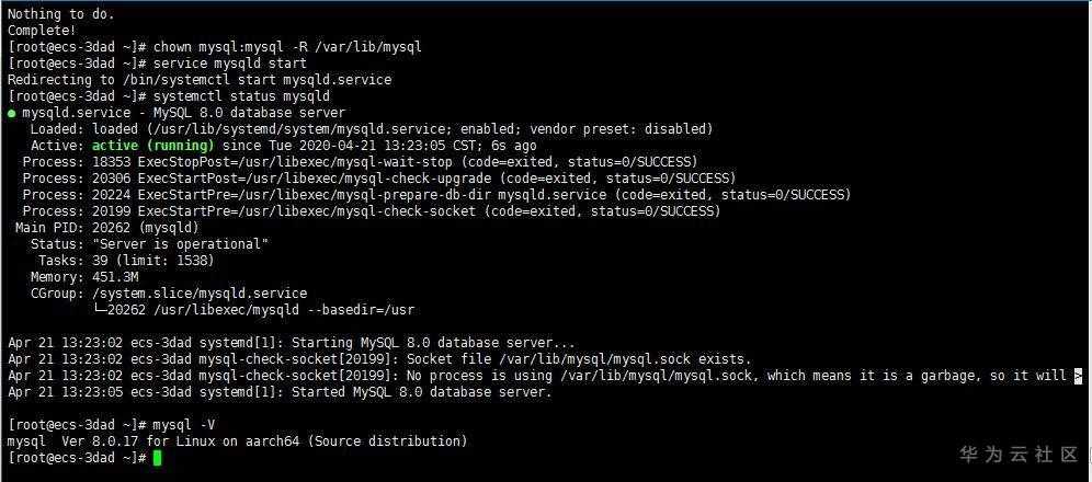 本文档以“CentOS 8.0 64bit(40GB)”操作系统为例,对应MySQL版本为Ver 8.0.17 for Linux on aarch64。