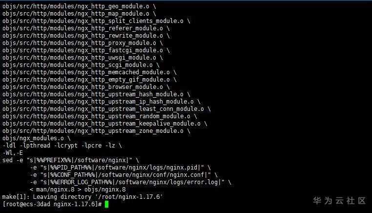 进入到 nginx-1.17.6文件夹下面,开始安装