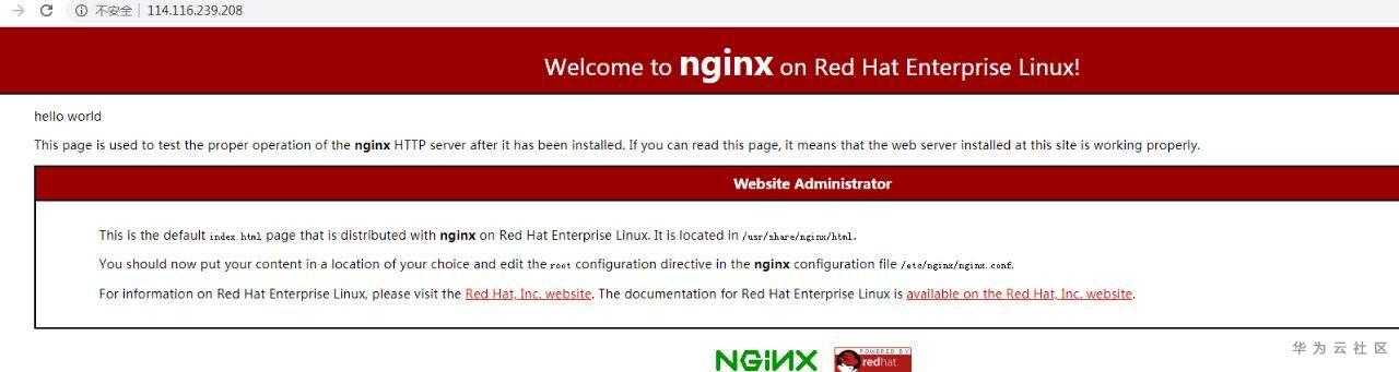 在浏览器中输入http://弹性公网IP地址/ ,即可访问服务器的默认主页。