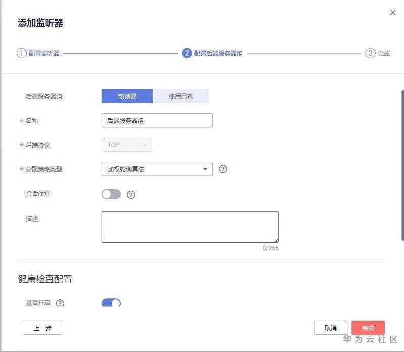 添加监听器,新建后端服务器组,健康检查完成。