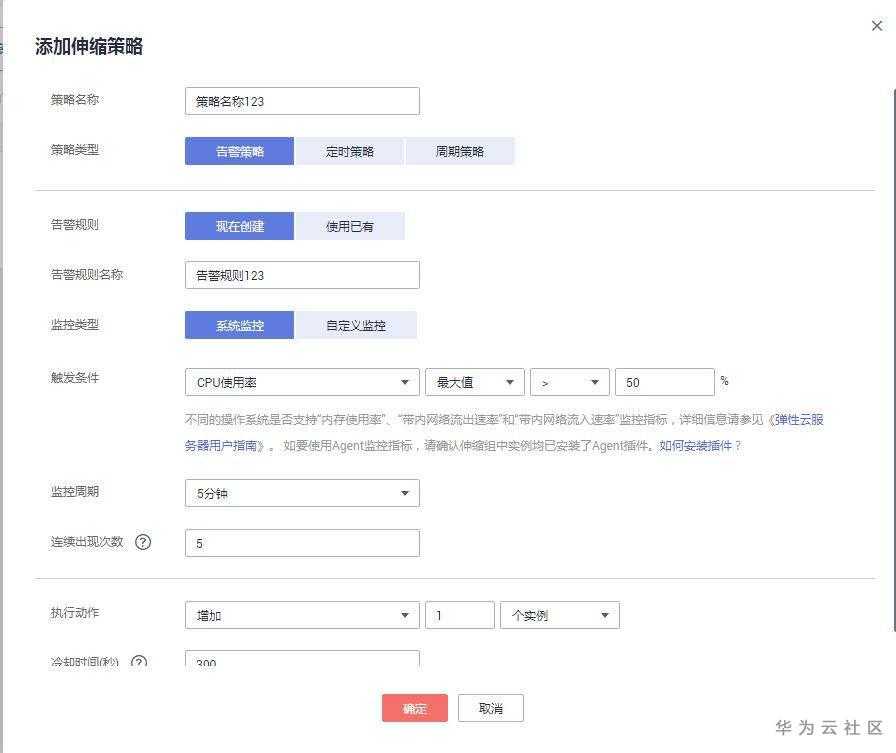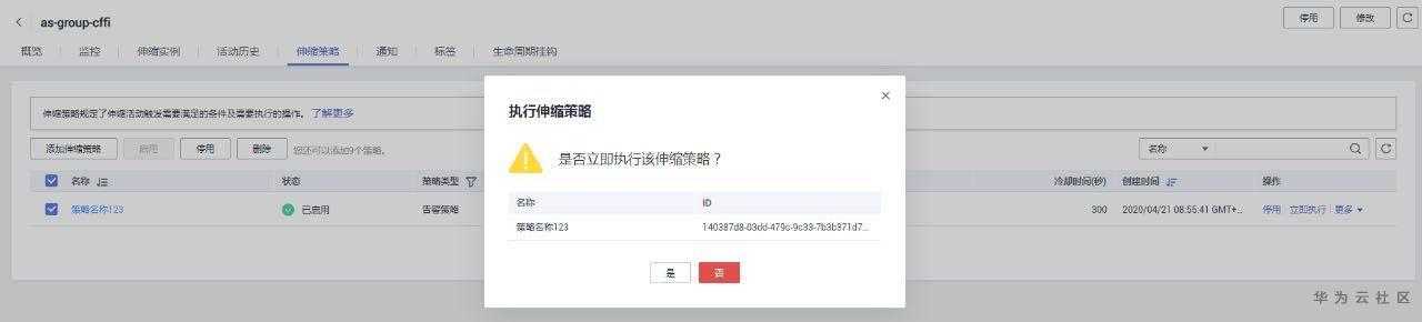 弹性伸缩组创建完成,需要添加伸缩策略来触发伸缩活动