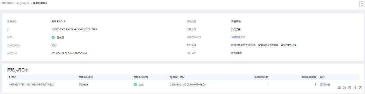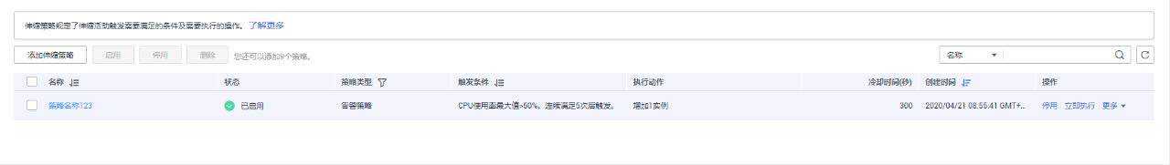 伸缩策略添加完成