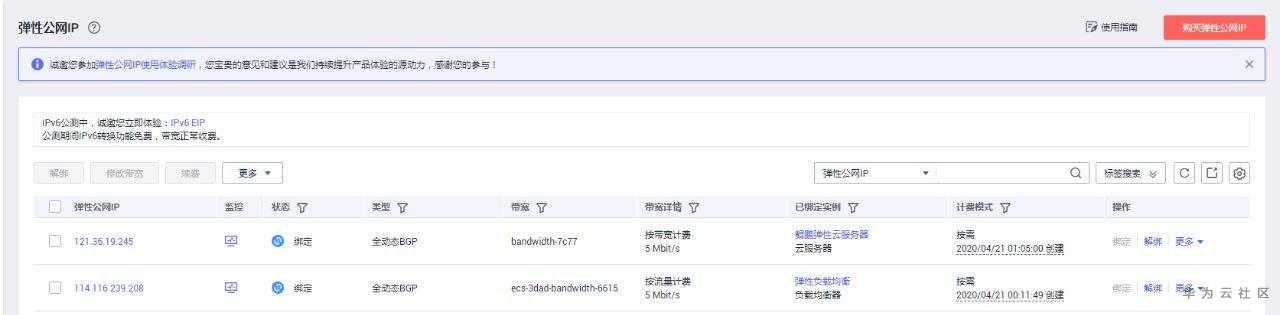1. 释放弹性公网IP