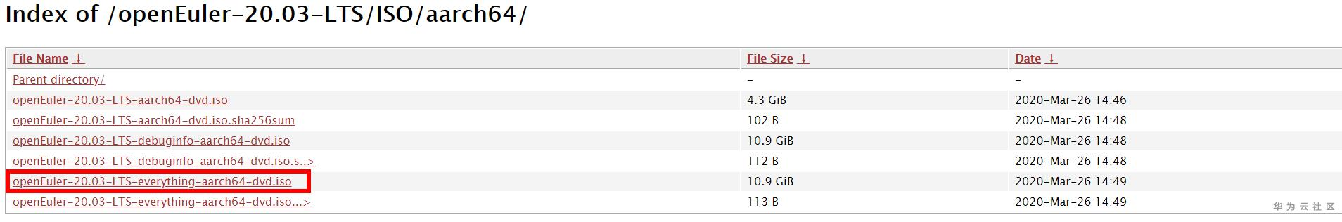首先在https://repo.openeuler.org/openEuler-20.03-LTS/ISO/aarch64/ 中下载openEuler镜像,建议选择Everything版本。