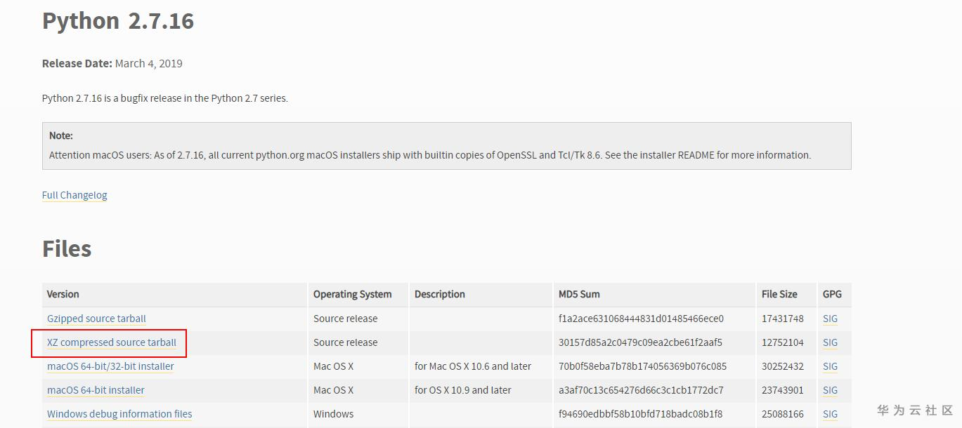 进入https://www.python.org/downloads/release/python-2716/ 下载合适版本,这里选择的是2.7.16版本