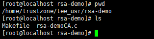 进入/tee_usr/rsa-demo文件夹中,可以看到RSA加解密的CA demo源码和对应的makefile文件