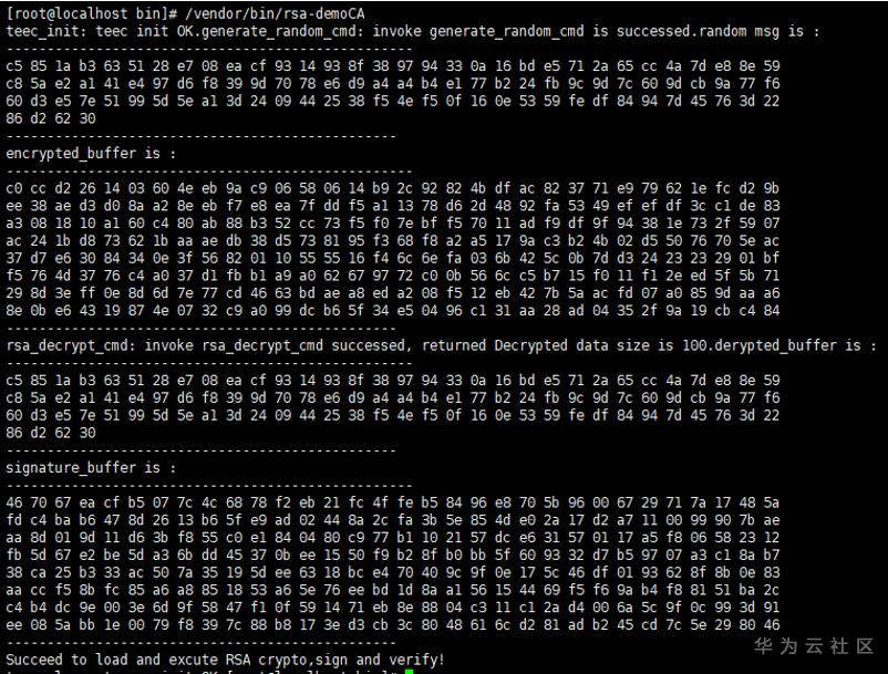 执行成功,则可以看见对应的rsa的加解密过程和数据打印,说明rsa加解密执行成功