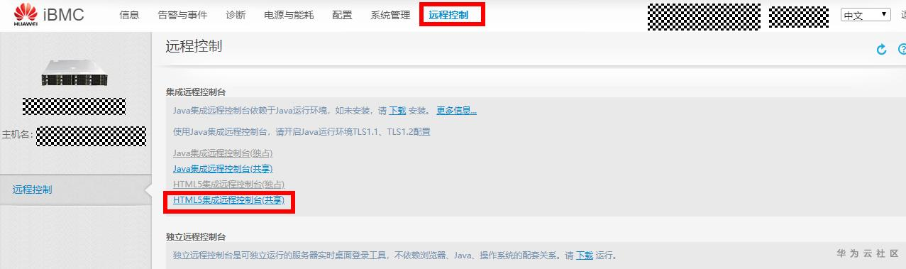 在华为iBMC中选择Taishan服务器,在远程控制中选择HTML5集成远程控制台