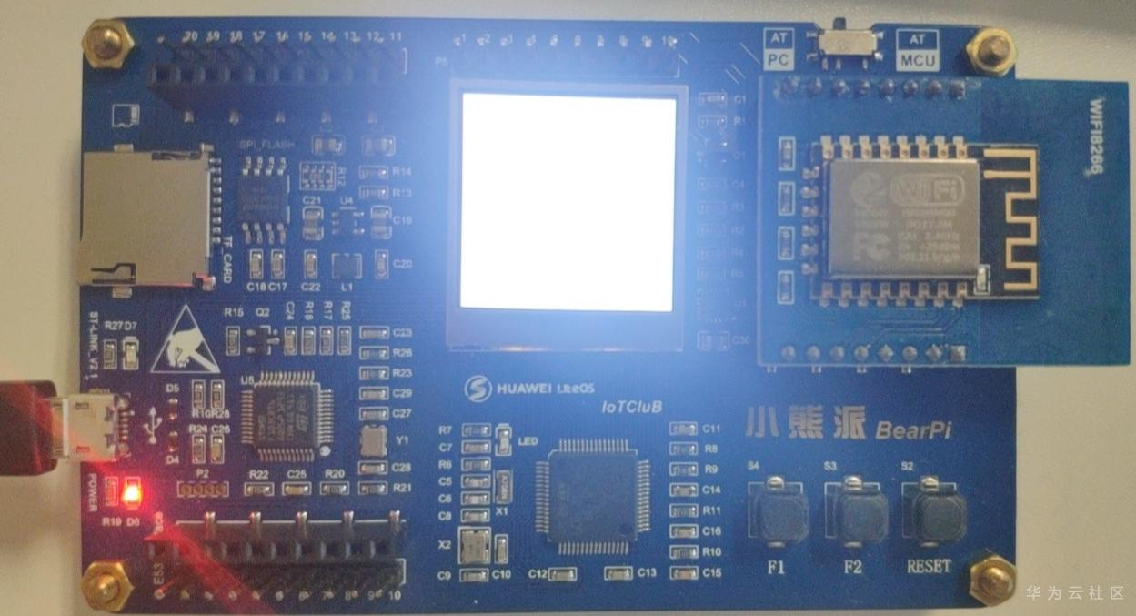 首先将ESP8266插上小熊派开发板通过USB线与PC机连接,将AT拨码开关拨到AT<->PC一侧,具体如下图。