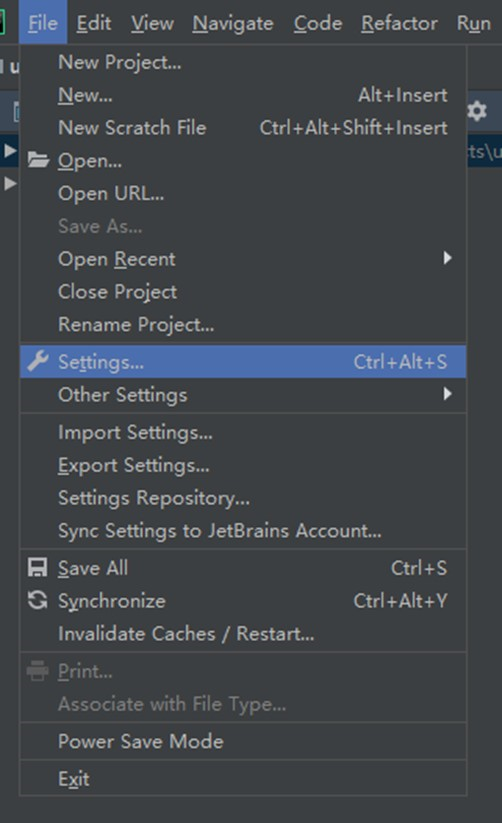 接着回到PyCharm IDE,打开Settings: